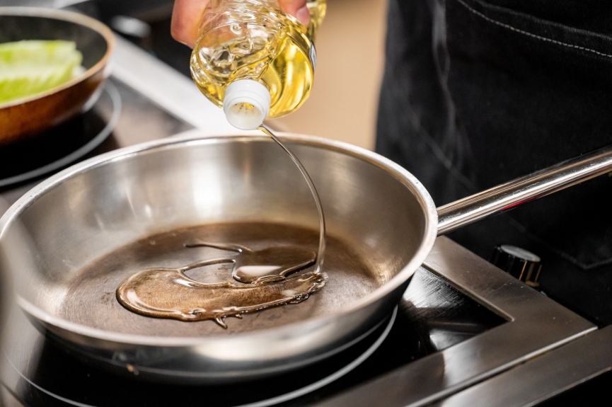 Healthy cooking isn't just about the food you choose. It can also be about the oil you use and how you use it. Stainless steel pans aren't porous materials like cast-iron pans, so they don't absorb oil. That means you should always coat the cooking surface lightly with oil or fat. Oils with a high heat smoke point are best for sautéing vegetables or cooking proteins, while butter works well for finishing dishes or making pan sauces.