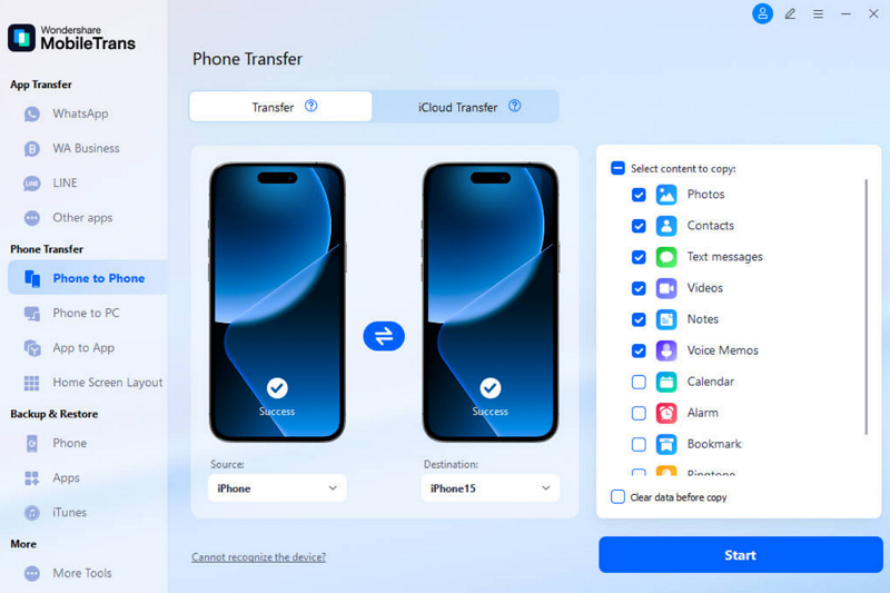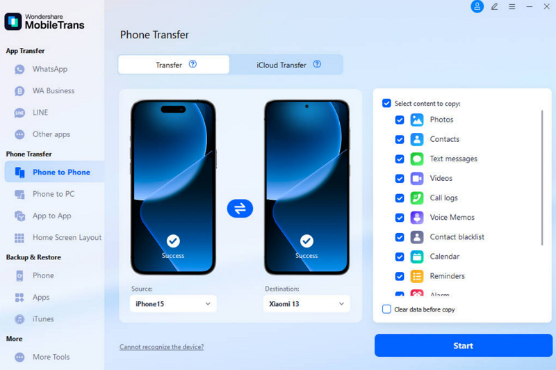 When it comes to moving data with a computer, MobileTrans is the best option to consider. It provides a reliable phone-to-phone transfer feature that works across Android and iOS platforms without problems. With its one-click transfer capability, you can easily move all your important data within minutes. Compared to Bluetooth or other apps, MobileTrans ensures much faster file transfer without needing internet or Wi-Fi.