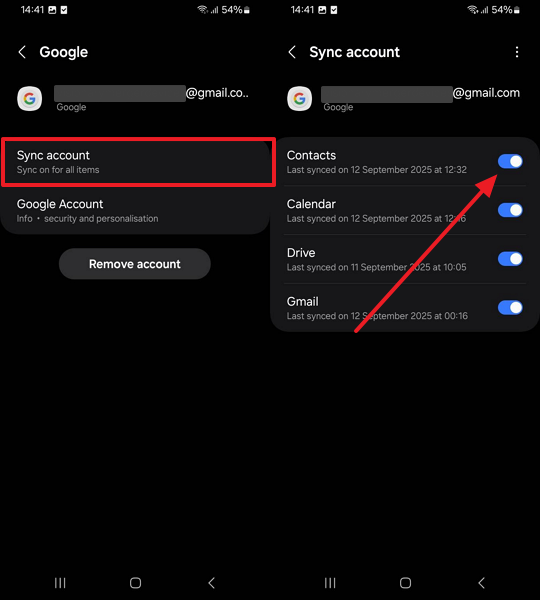 Step 2. Moving ahead, navigate to the “Sync Account” option and turn on the “Contacts” toggle to start syncing.