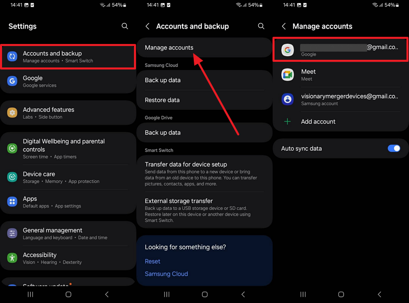 Step 1. In your Android’s settings, go to the “Account and Backup” section to access the “Manage Accounts” option. Following this, tap your “Google” account where you are going to sync contacts.