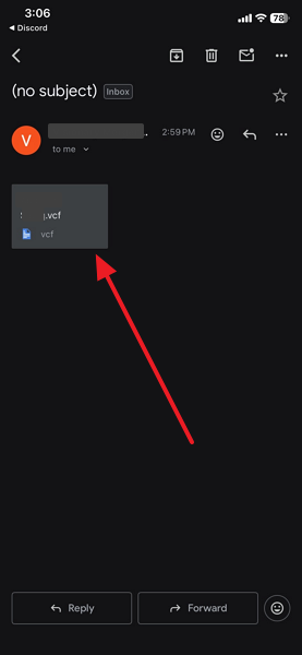 Step 2. Upon accessing the email on your iPhone, tap on the “VCF” file to download and open it.