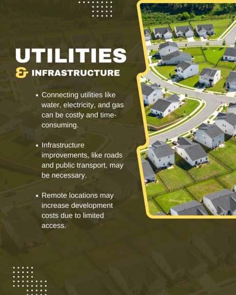Infrastructure refers to things like roads, sidewalks, and public transportation options. If the land is located in a remote area with no easy access to roads or public transportation, it could be a major issue for your real estate development project. You may have to build new roads or improve existing ones, which can add significant costs to the project.