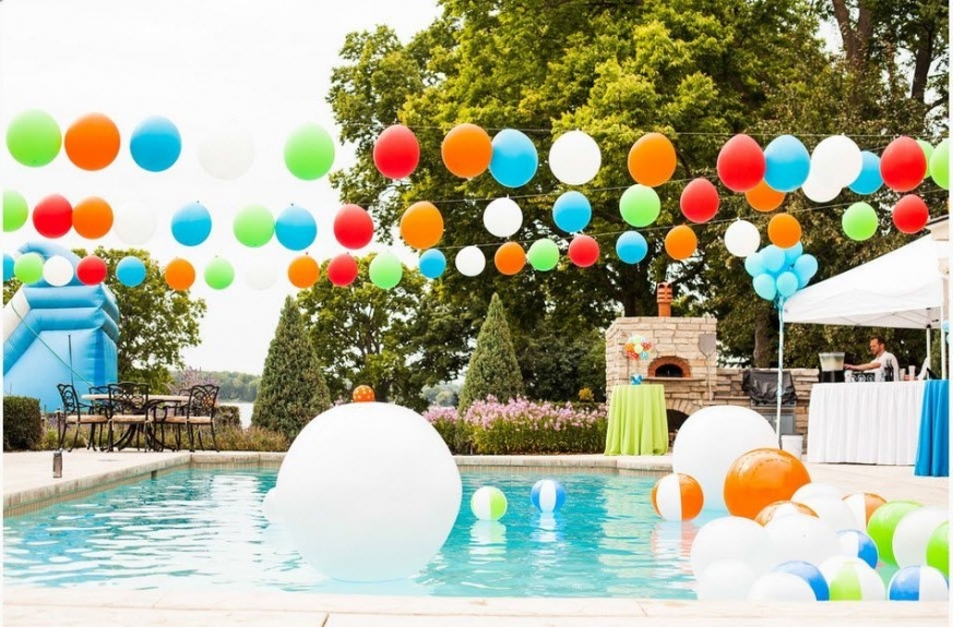 - Baby showers – soft pastel themes with floating clouds of balloons
