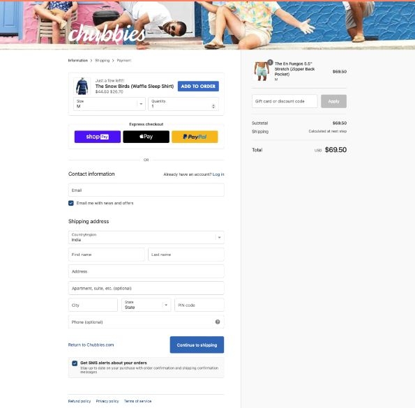 Observe how Chubbies Shorts ensures a seamless checkout process.