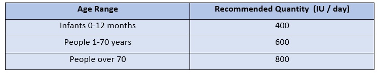 The following table shows the recommended amount of vitamin D to meet the daily needs of the body, according to the age group: